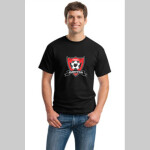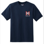 Wave Division logo . Available in youth, men's and ladies sizing. Name and number can be added on the back for an additional fee. 6-ounce, 100% cotton (preshrunk) Seamless double-needle collar Double-needle sleeves and hem Taped neck and shoulders Sports Grey 90/10 cotton/poly.