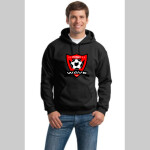 Gildan Hoodie with Wave Division Logo. Available in youth and adult sizes. Name and Number can be added on the back for an additional fee. 8-ounce, 50/50 cotton/poly; no-pill Air Jet Yarn Double-needle stitching Double-lined hood with dyed-to-match drawcord adult only Set-in sleeves Rib knit cuffs and waistband with spandex Front pouch pocket